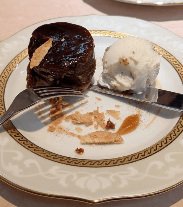 黒っぽい煮リンンゴに、添えられたラムレーズンアイスの相性バッチり。
