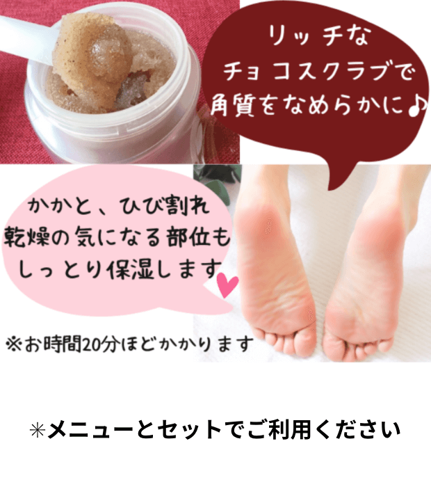 上質なカカオの香りのチョコで磨いて、手足つるつるに癒されませんか♪